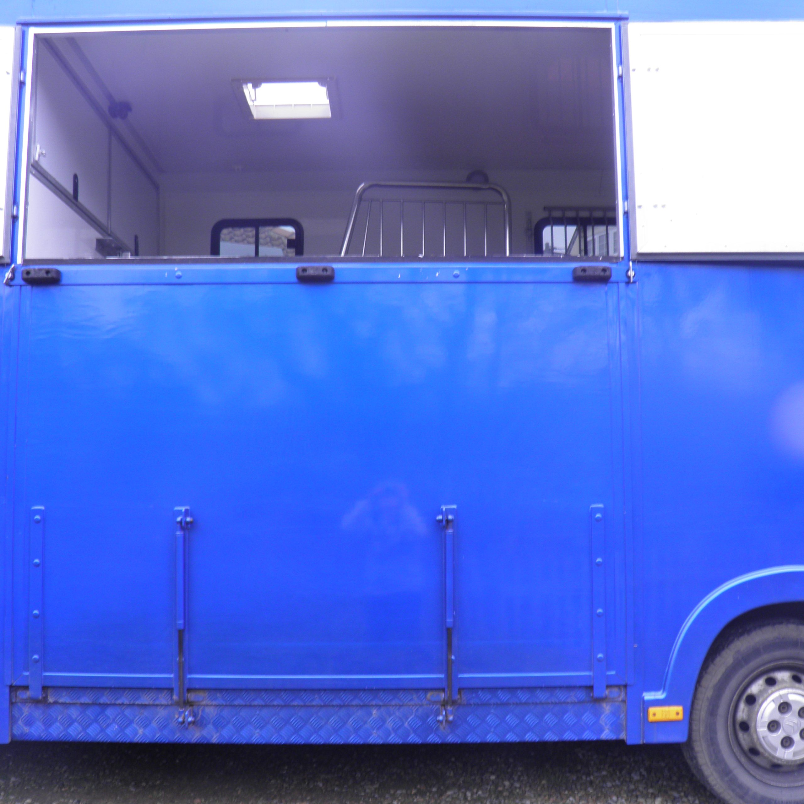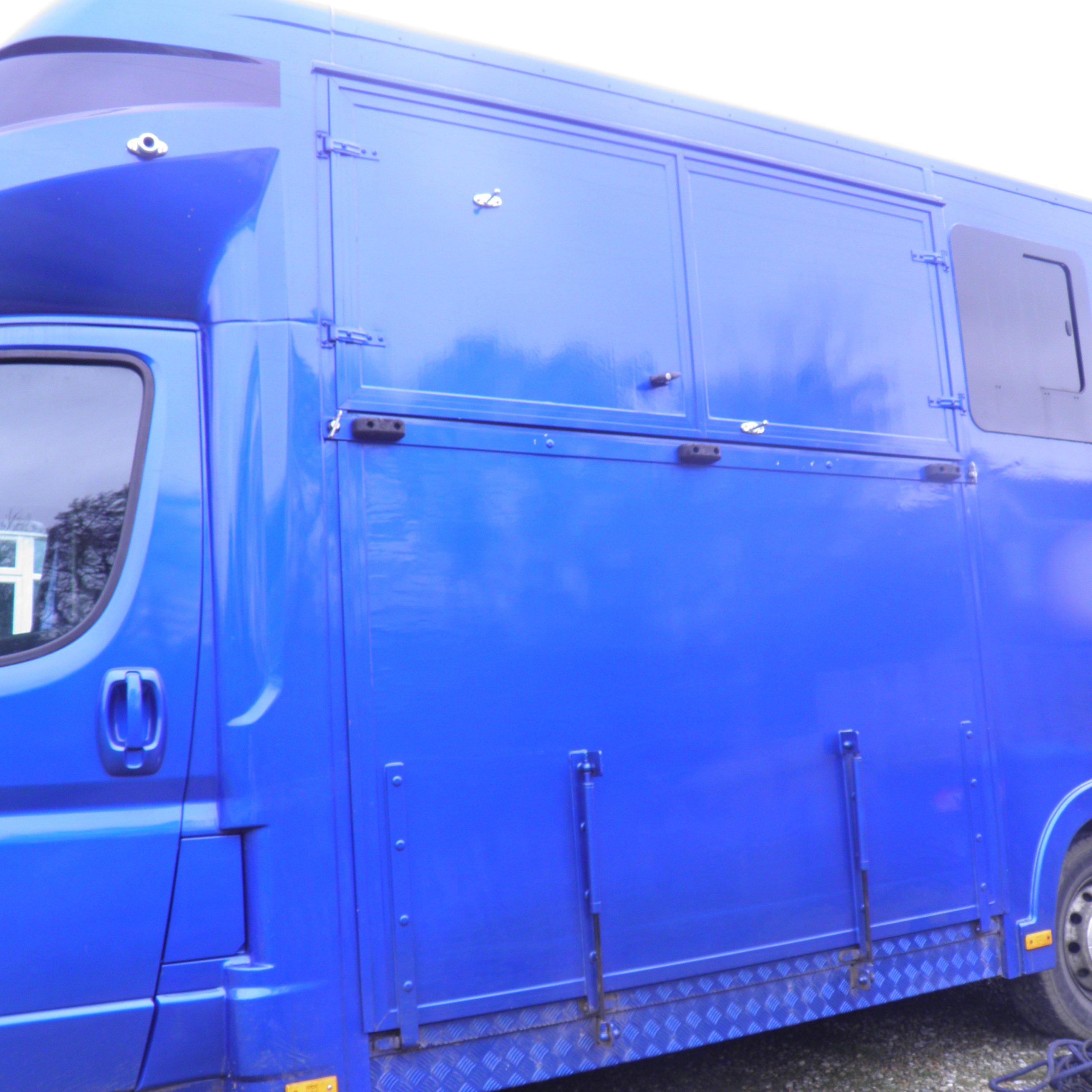 Excellent condition Citroen Relay horsebox. first reg 2017, conversion done 2024. 87000 miles. lovely box with stalls for two horses, due to sloping area at the head end where living is, it may not be long enough for over 15hh. over cab lockable storage, internal camera, access between box and living area. Living has 3/4 bed which can be changed to seating, gas ring and sink, two saddle holders and bridle hooks. new battery and leisure battery 2025. cab has faux leather seats, reversing camera, radio and CD player. Regularly serviced and MOT till April 2027.