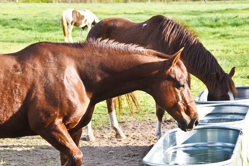 - Add warm water to cold troughs in winter, as horses drink about 40% more when offered heated water versus near-freezing water